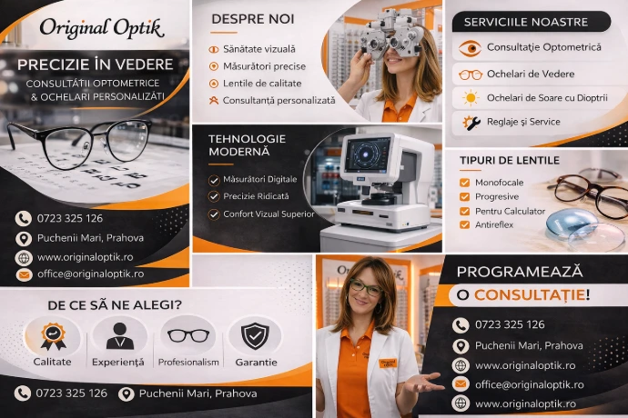 Colaborăm cu furnizori de încredere și folosim tehnologii moderne pentru a oferi soluții optice adaptate fiecărei persoane. Indiferent dacă ai nevoie de ochelari pentru zi de zi, pentru lucru la calculator sau pentru activități sportive, echipa noastră te ajută să alegi varianta potrivită.